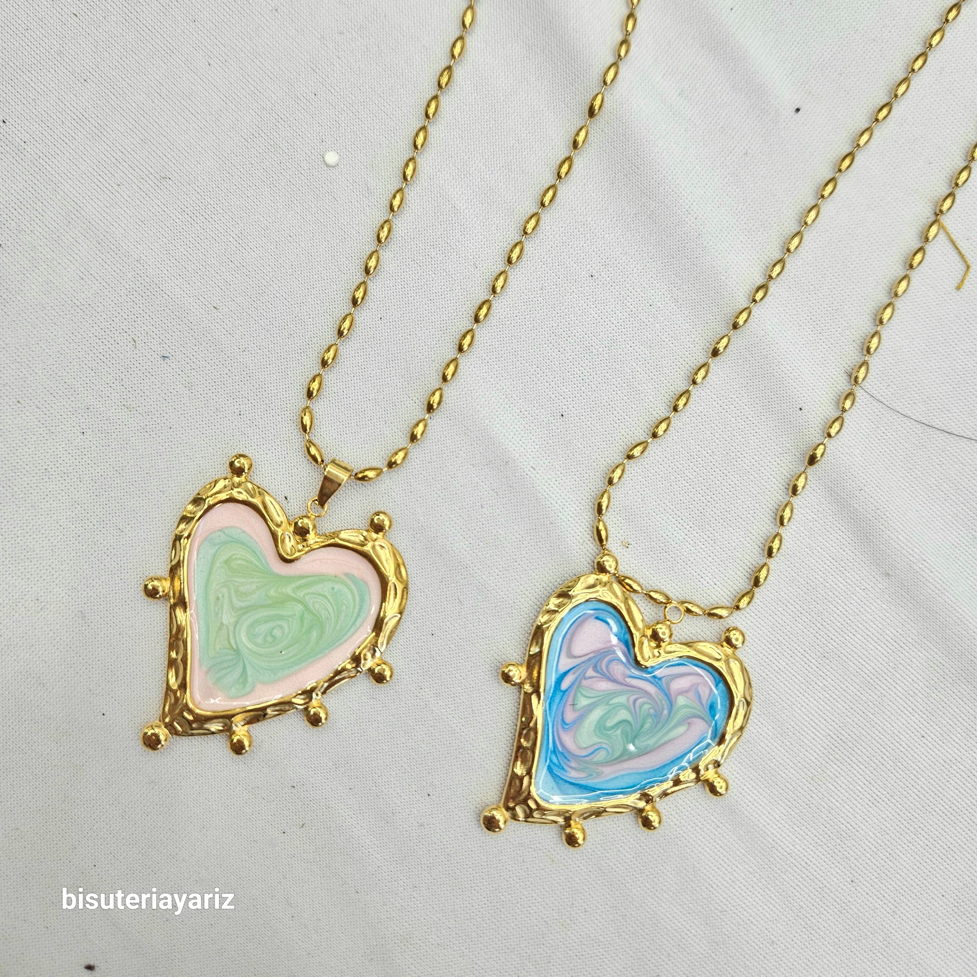 Collar corazon verde rosado