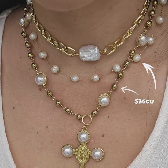 Incluye solo el collar del choker ajustable 14-16 pulgadas. Inoxidable. Perla natural