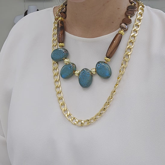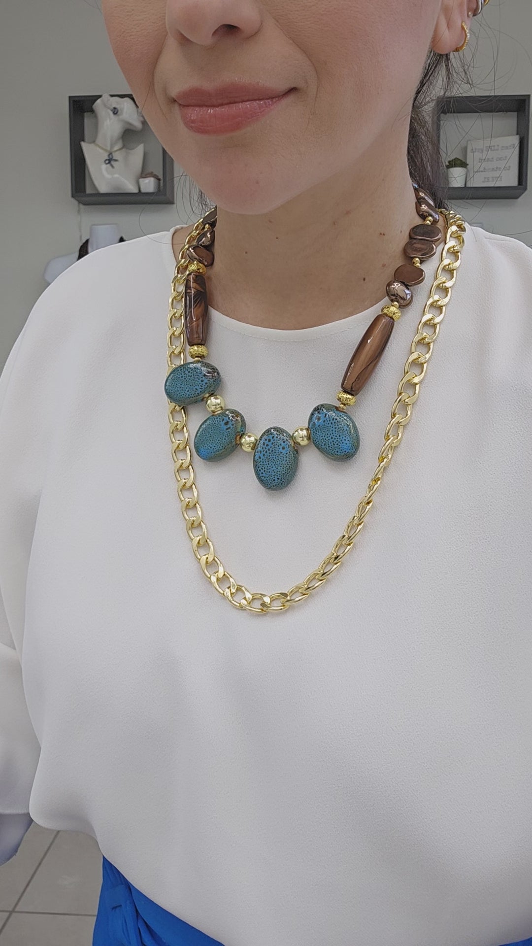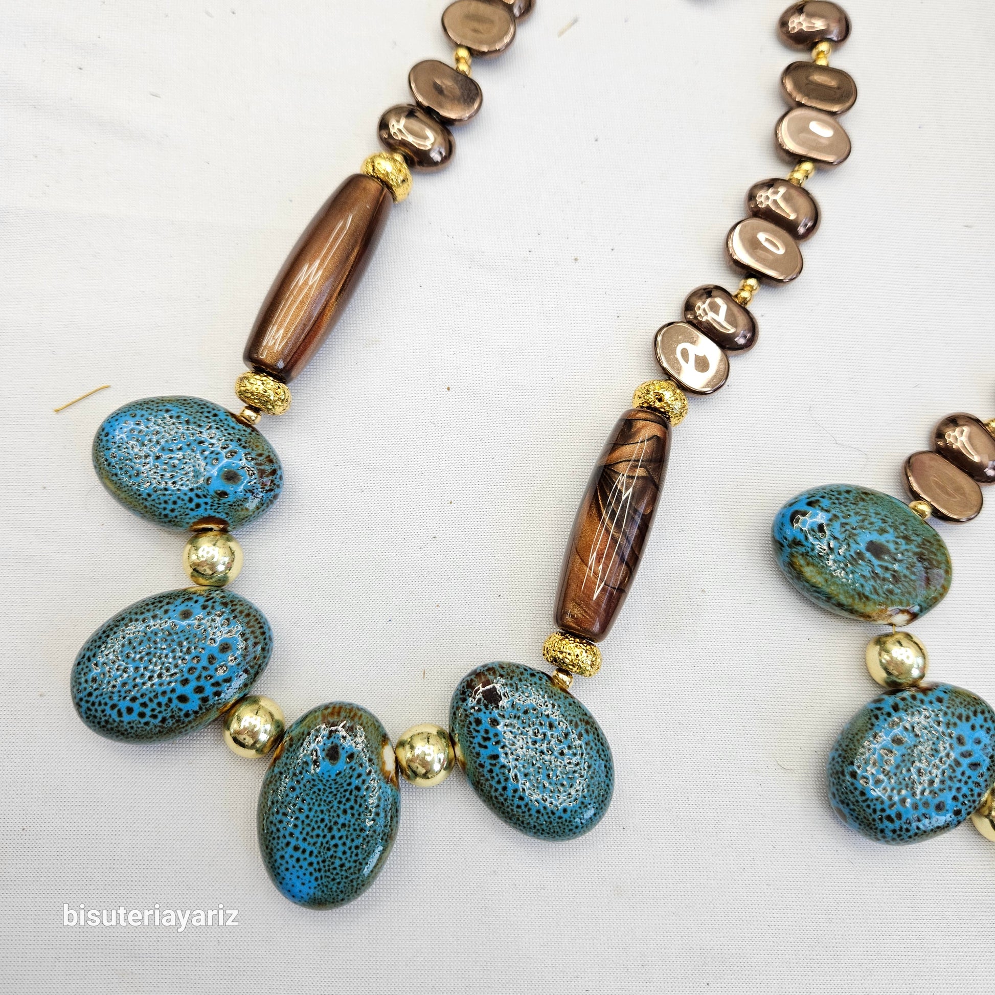 Solo incluye collar con piedras azules y marrón ajustable 17-19 pulgadas