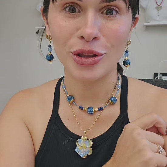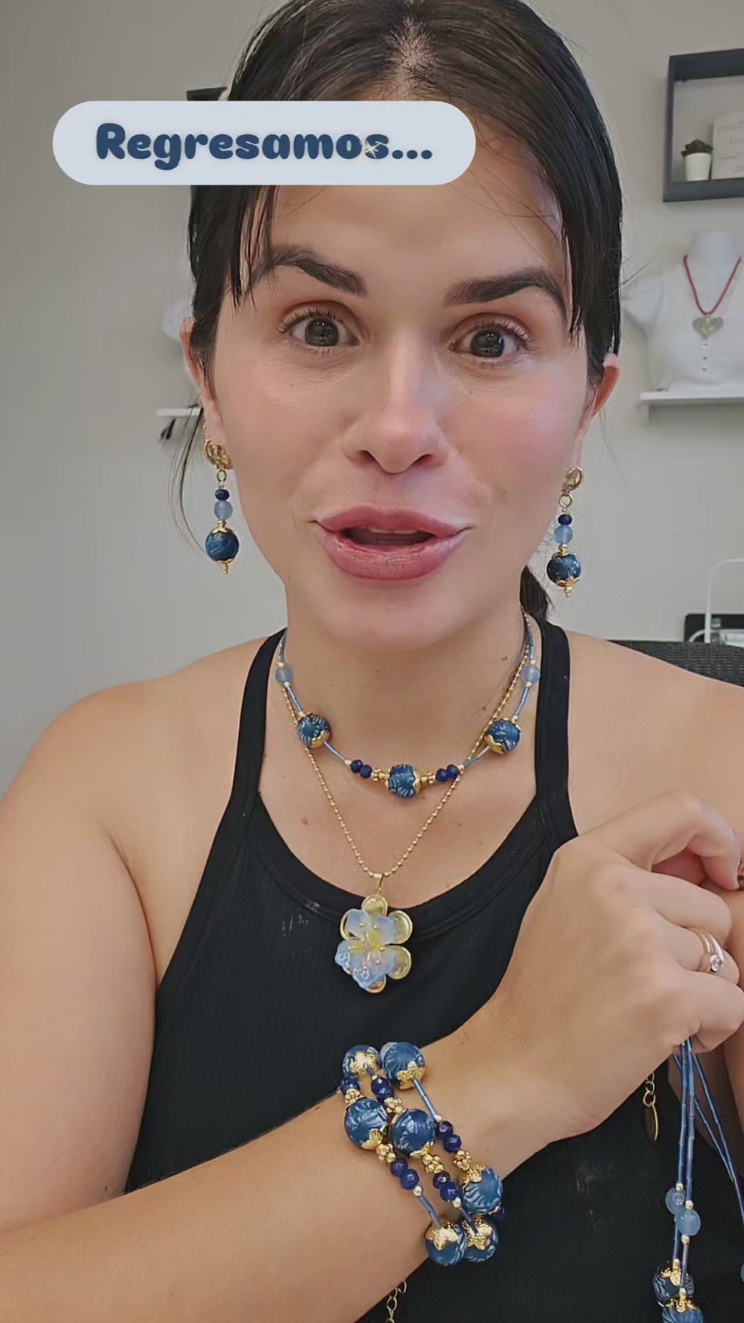 Solo incluye el collar dorado con la flor azul. Ajustable 16-18 pulgadas. Stainless steel