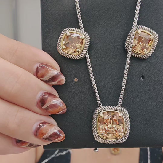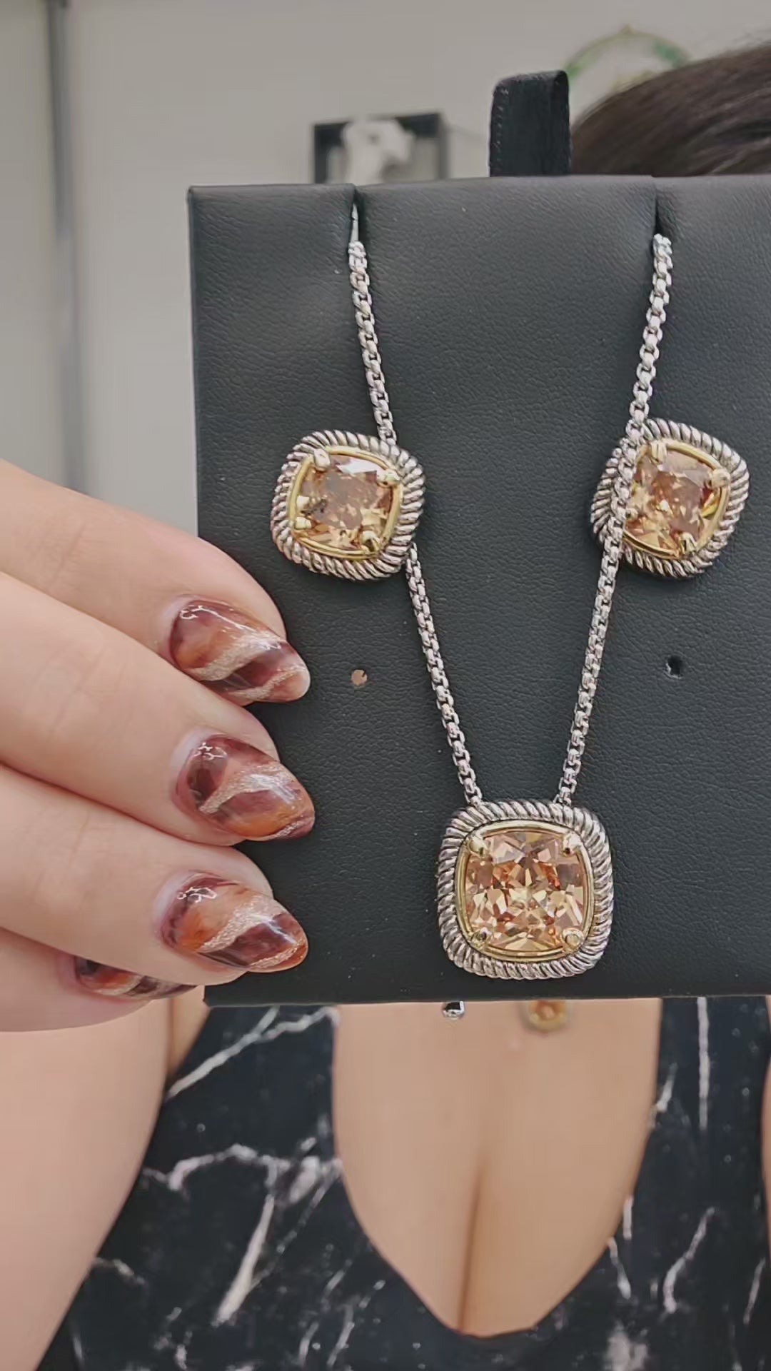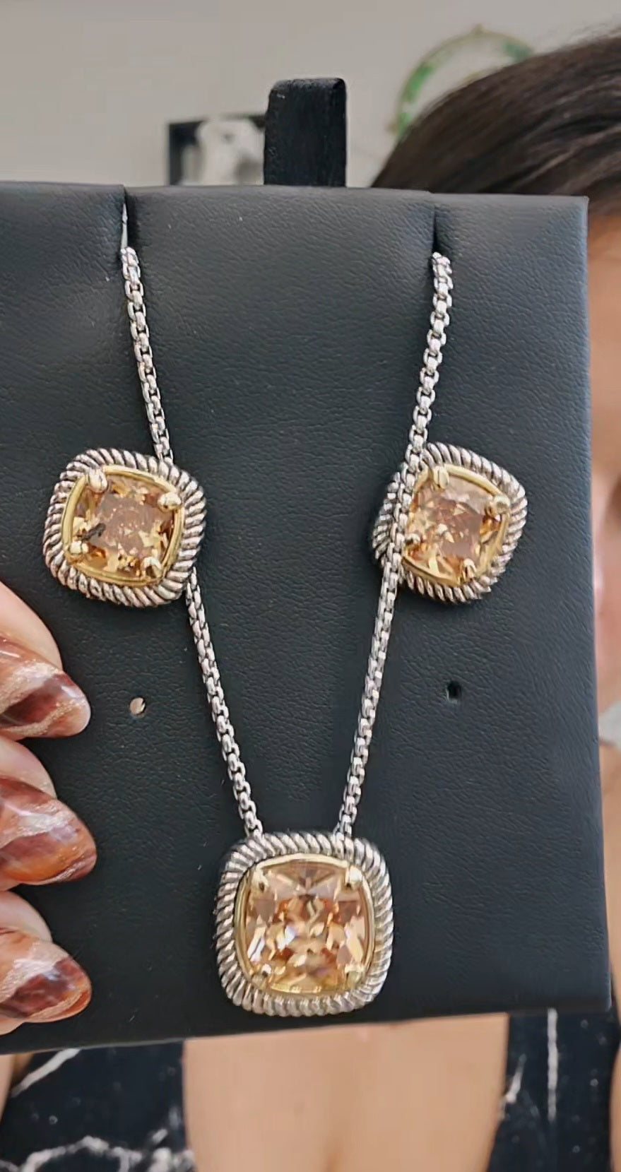 Incluye aretes estilo dormilonas y collar en rodio ajustable 16-18 pulgadas